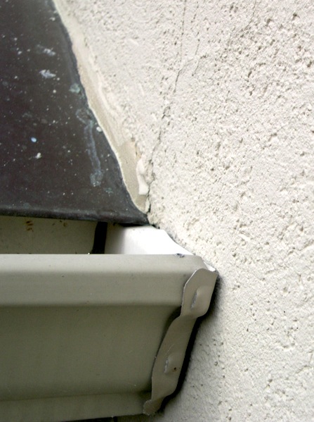 - where gutters terminate at the side of a chimney.